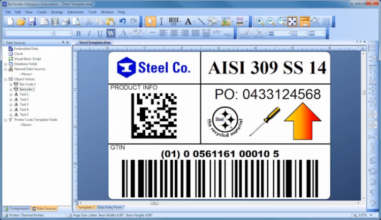 BarTender — это универсальную программу для создания, печати графических и текстовых знаков для любой отрасли. Программа позволяет формировать образцы этикеток, штрих-кодов, карточек, QR-кодов, RFID-меток. Примечательно, что утилита способна интегрироваться в стороннее приложение или работать самостоятельно.
