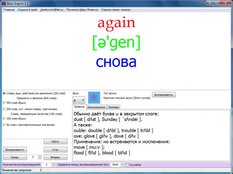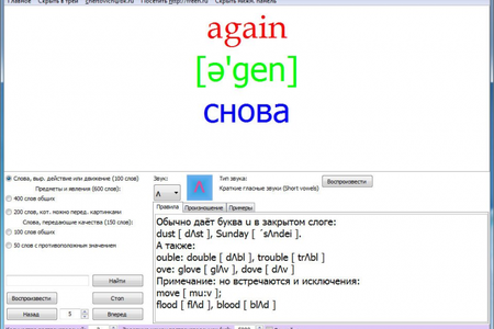 Basic English - это программа для помощи в изучении английских слов и понимания структуры слов. Ее словарь состоит из 850 слов. Она позволяет просматривать и озвучивать слова. Так же, в ней вы найдете правила произношения, примеры и многое другое.
