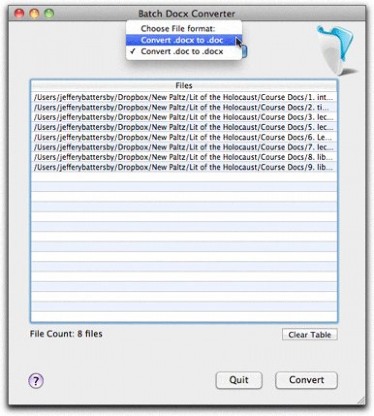 Программа Batch Docx Converter предназначена для конвертирования документов Word между форматами docx и doc. Она может конвертировать документы из docx в doc, и наоборот.