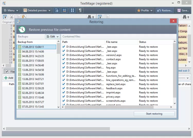 Batch Text Replacer — это программа, которая поможет отредактировать сразу несколько документов. Она содержит множество продвинутых опций для внесения нужных изменений. Программа способна выполнять различные действия, например, заменить/удалить/вставить целый фрагмент текста, добавить переносы, изменить кодировку текста и многое другое.