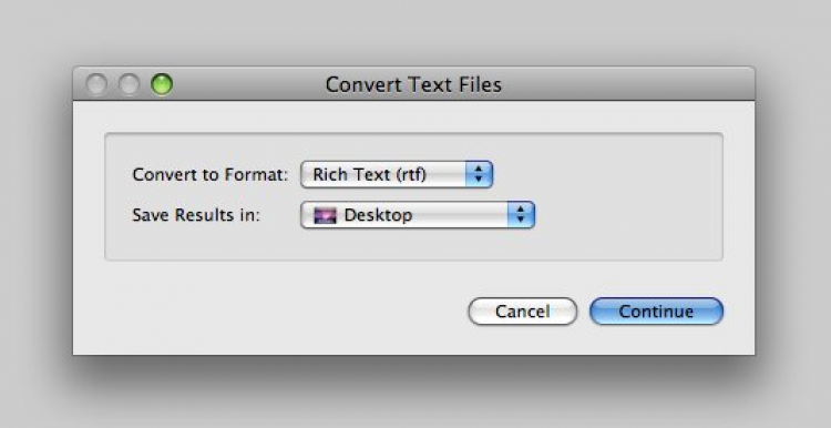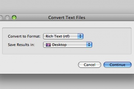 BatchConvert TextFiles for Mac Утилита, позволяющая конвертировать текстовые файлы в формат RTF, RTFD, HTML, TXT, DOC, WORDML и WEBARCHIVE.