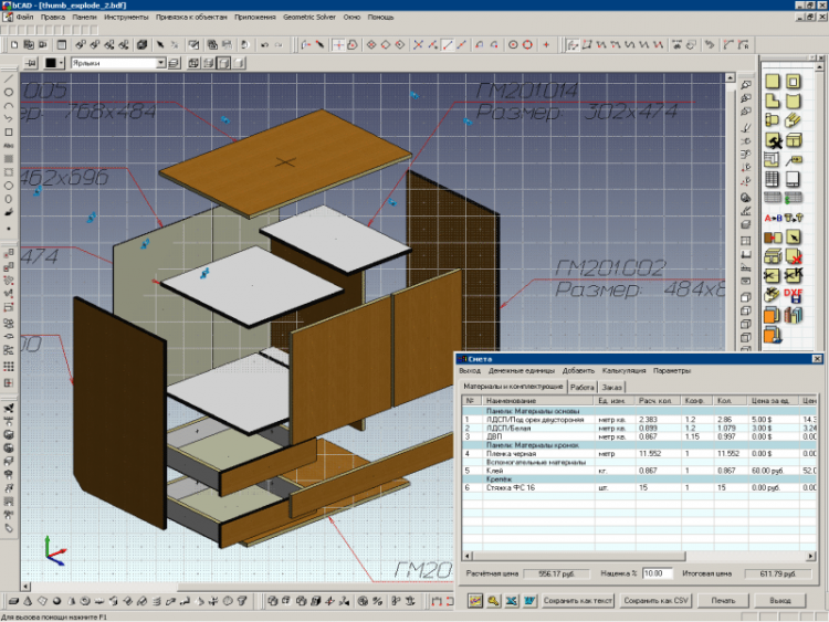 bCAD Мебель - это программа, оторая представляет собой профессиональное программное обеспечение для двумерного черчения, трехмерного моделирования и фотореалистичного тонирования. Программа использует стандарт ЕСКД, а также позволяет выполнять произвольную настройку формата вывода документации.