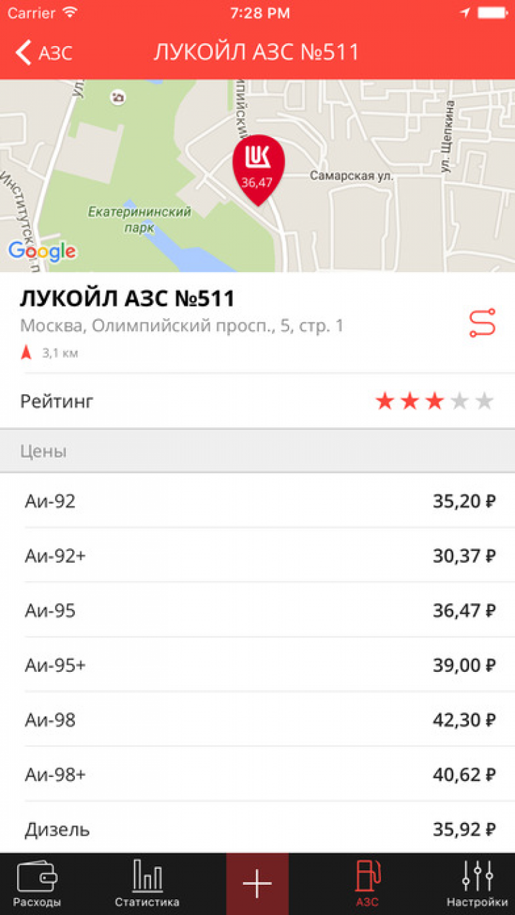 - точный расчет расхода топлива (автоматическая конвертация MPG в л/100 км);