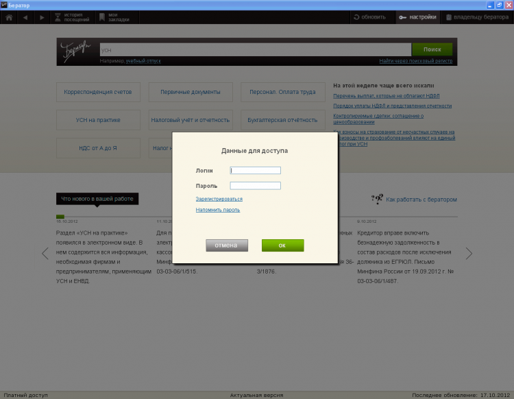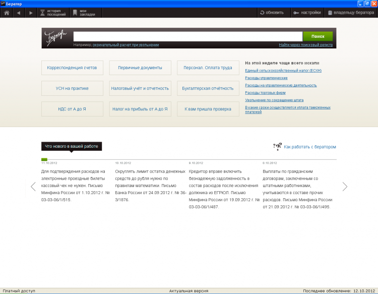 Бератор для Windows - это революционно новая энциклопедия для бухгалтеров, объединившая в себе передовые технологии, опыт и знания, необходимые для решения повседневных задач, теперь доступна на компьютере. Бератор всегда актуален. Более 100 экспертов издательства ежедневно следят за изменениями законодательства и в текущем режиме актуализируют информацию Бератора.