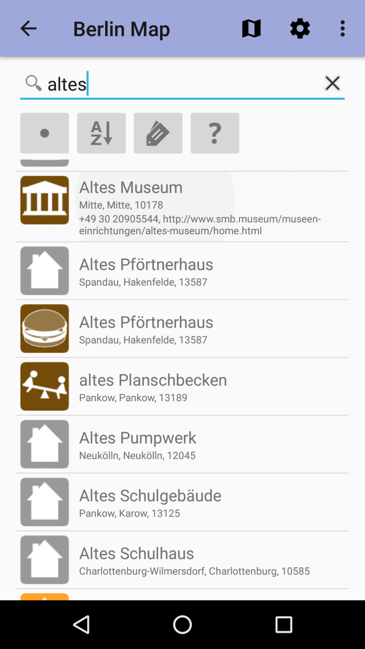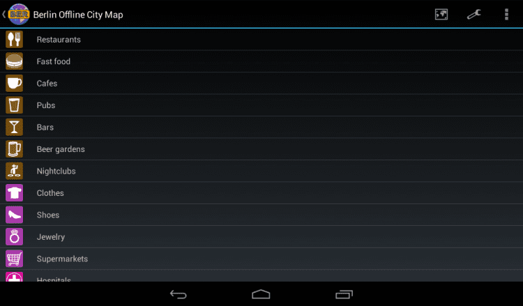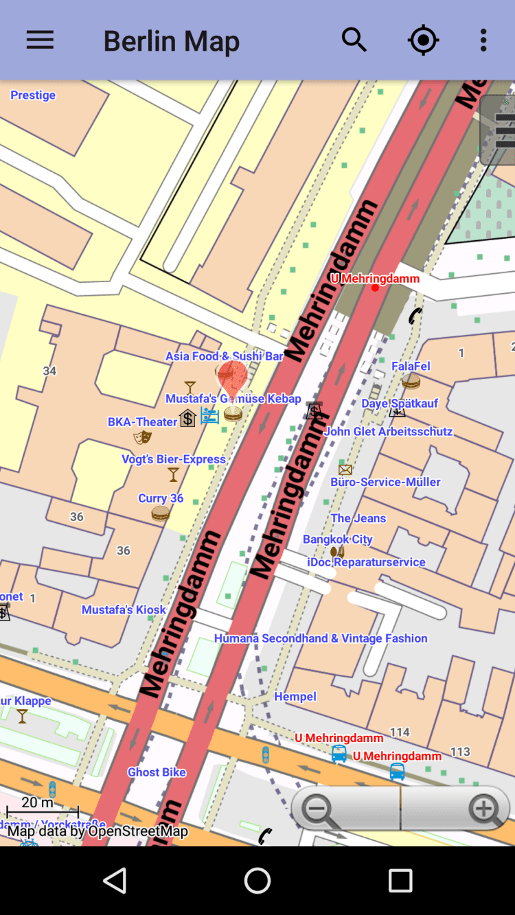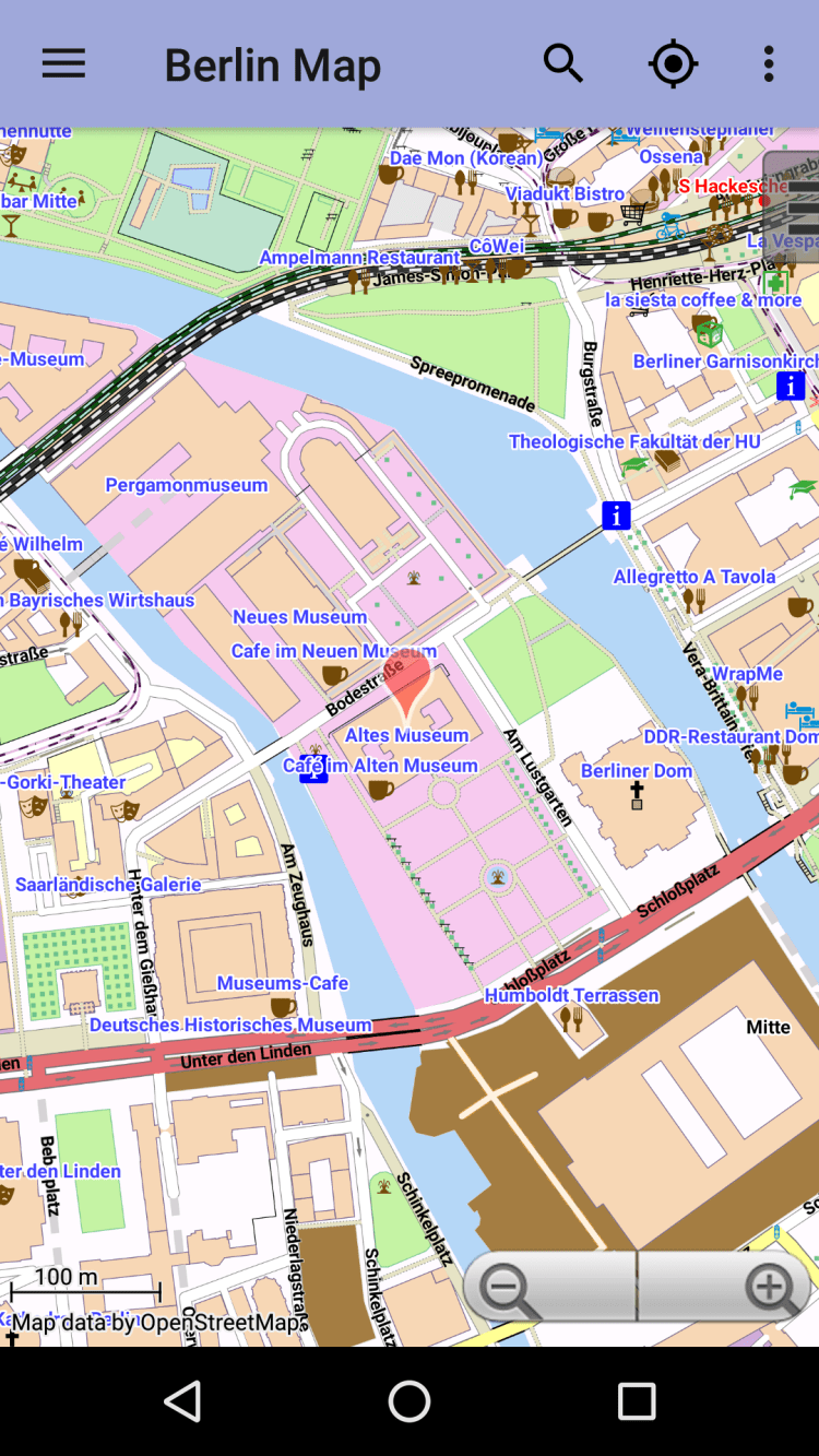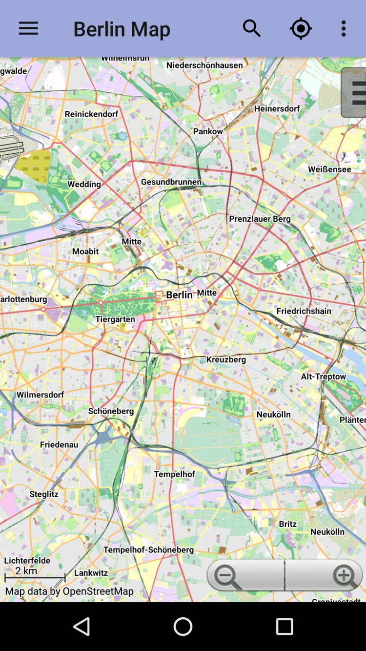 Берлин: Офлайн карта Офлайн карта города с возможностью поиска улиц, ресторанов, отелей и т.п. Это приложение предоставляет карту города, которую можно просматривать в режиме офлайн. Карта взята из данных популярного проэкта Openstreetmap. После установки приложения, для просмотра карты как и поиска в ней, не требуется связьи с интернетом.