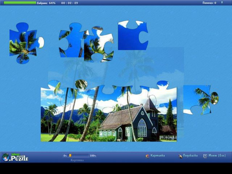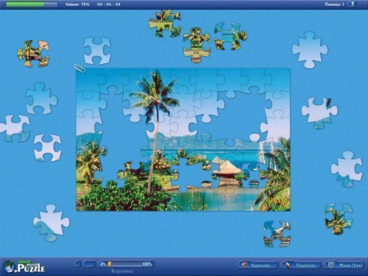 Бесконечные пазлы помогут на время отрешиться от суетного мира и погрузиться в приятную атмосферу спокойной музыки и прекрасной анимированной графики. Сосредоточьтесь только на игре, ведь собирая даже особо сложную мозаику, вы в любой момент можете активировать подсказку и найти нужный сегмент. Ну а в случае чего воспользуйтесь клавишей антибосс или функцией записи игры, и в следующий раз вам не придется собирать всю мозаику заново.