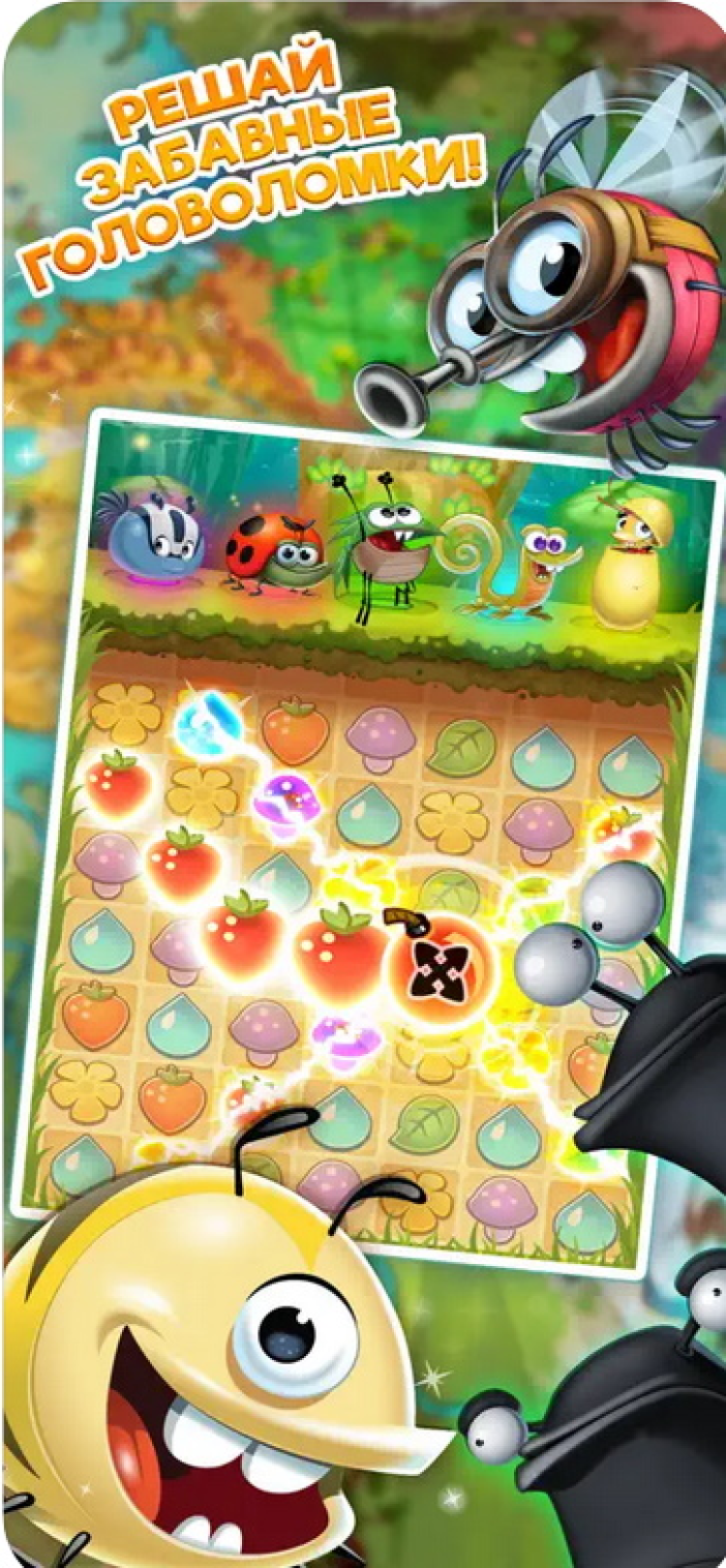 Best Fiends — бесплатная головоломка с элементами RPG. Решайте любимые головоломки в стиле "три в ряд", собирайте команду букашек и открывайте их особые умения, которые помогут в прохождении игры и соревнуйтесь с друзьями на Facebook. Игра постоянно обзаводится новыми уровнями и интересными головоломками.