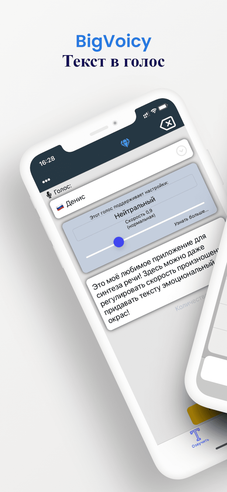 BigVoicy — небольшое, но удобное приложение для озвучивания текстов. Обладает большим выбором реалистичных, настраиваемых голосов.