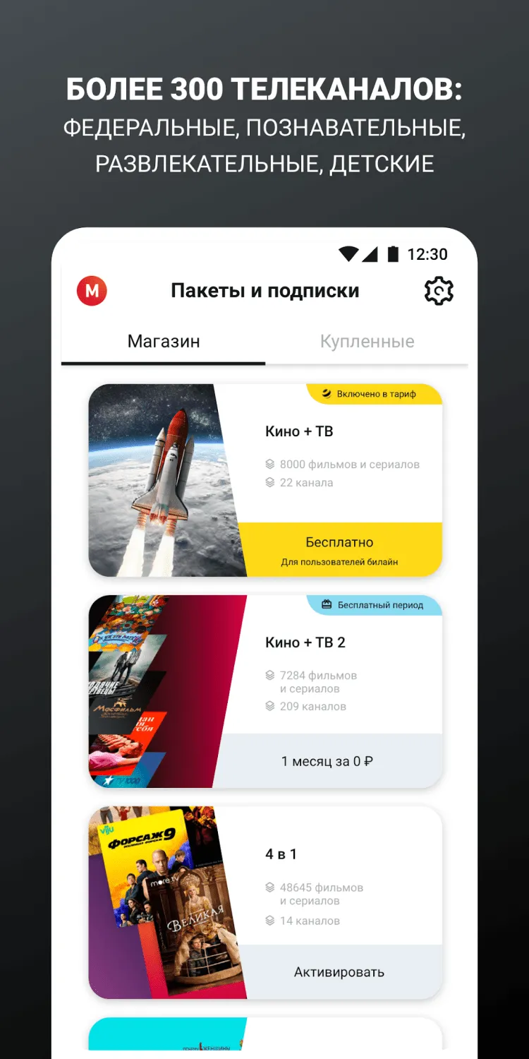- более 300 российских и иностранных ТВ каналов различных тематик;