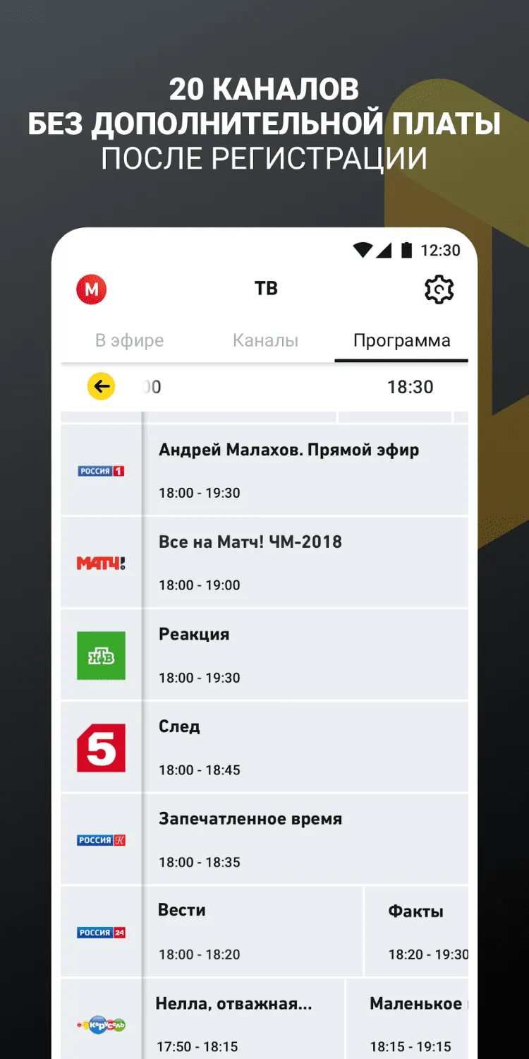 Для всех пользователей бесплатно доступно 20 эфирных ТВ каналов.