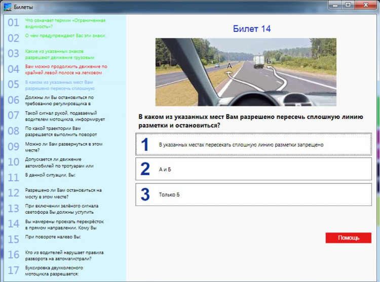 Вам будут выданы 20 случайных вопросов со всех билетов. Третий режим – Решение случайных вопросов. Проходя тестирование в этом режиме вы можете поставить число вопросов самостоятельно. Данная программа подойдет всем кто желает выучить или повторить правила дорожного движения.