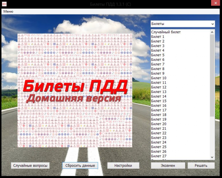 Билеты ПДД. Россия - это программа разработана специально для компьютера и предназначена для подготовки курсантов к успешной сдачи теоретических экзаменов на категории АБ в автошколе и ГАИ. В программе есть четыре режима вопросов. Первый режим – 40 билетов разработанных ГАИ. Второй режим – Экзамен.