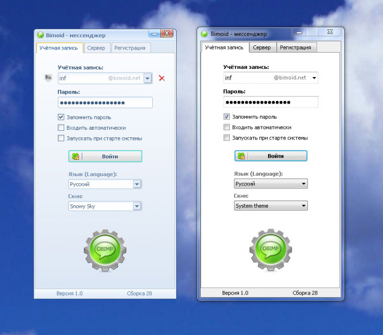 - Интерфейс поддерживает как системное оформление, так и скины