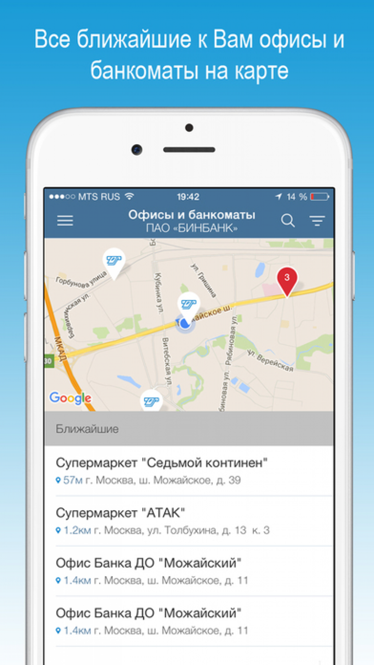 БИНБАНК-онлайн Приложение для клиентов БИНБАНКа, которое позволит удобно и быстро управлять своими денежными средствами, а так же быть в курсе всех совершаемых операций. Это приложение позволит вам оплачивать коммунальные услуги, сотовую связь, интернет, ТВ, переводить средства между своими счетами, либо в другие банки, создавать шаблоны платежей и переводов, просматривать информацию по счетам, историю операций за выбранный период, а так же актуальные курсы валют.