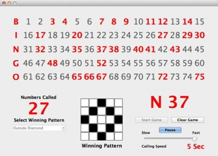 Bingo Caller Вариация игры Бинго на Mac. Вы можете выбрать одну из пяти цветовых схем, скорость называния выпавших чисел, а так же включать и выключать фоновую музыку.