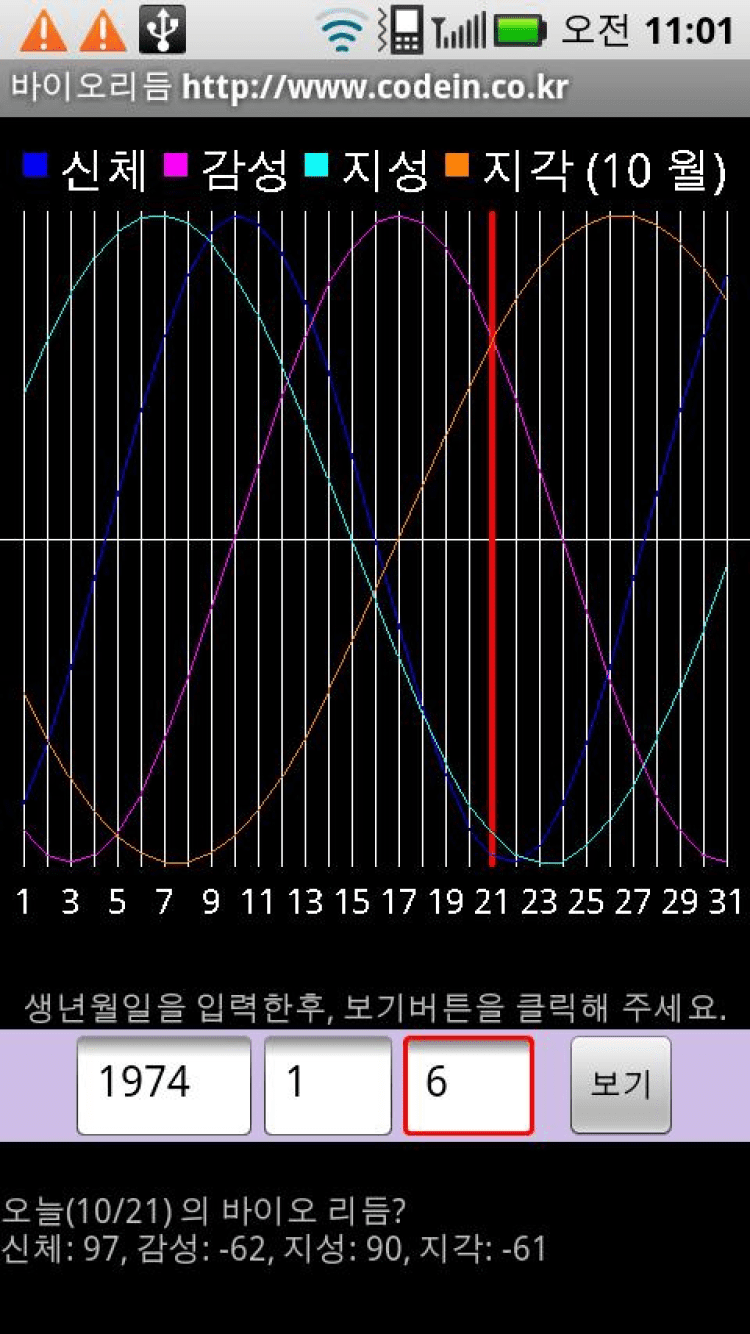 Biorhythm Программа для вычисления биоритмов пользователей. Благодаря программе Biorhythm, вы сможете проверять свое физическое, эмоциональное, интеллектуальное и интуитивное состояние каждый день. Для этого, необходимо просто указать свою дату рождения и день, для которого вы хотите узнать свои биоритмы.