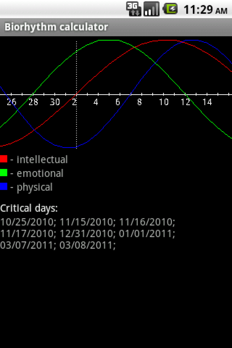 Biorhythm Calculator Программа для создания личных прогнозов и графиков биоритмов. Зная свои биоритмы вы сможете всегда знать, чего ожидать от наступающего дня.