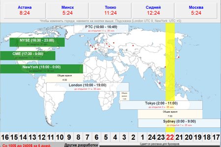 Кроме этого, программа "Биржевые часы" разделяет карту на торговые сессии, и оповещает о начале новой сессии.