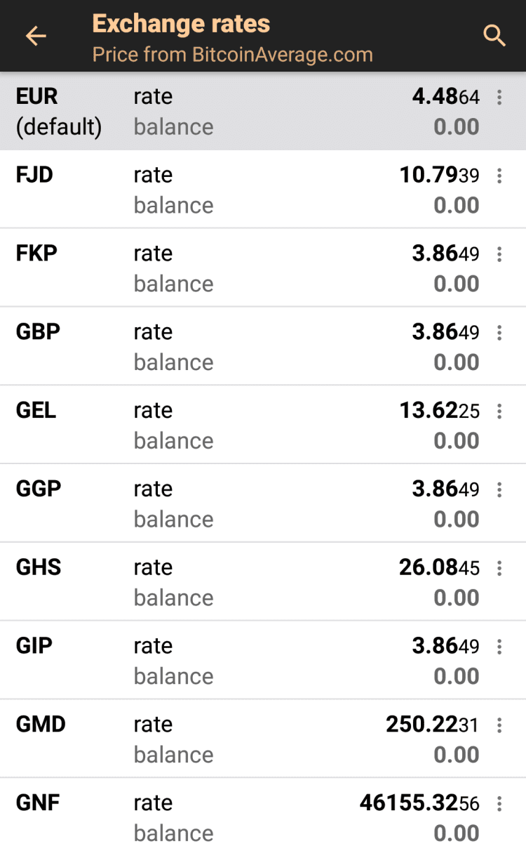 - отображение суммы в кошельке в BTC, mBTC и µBTC;