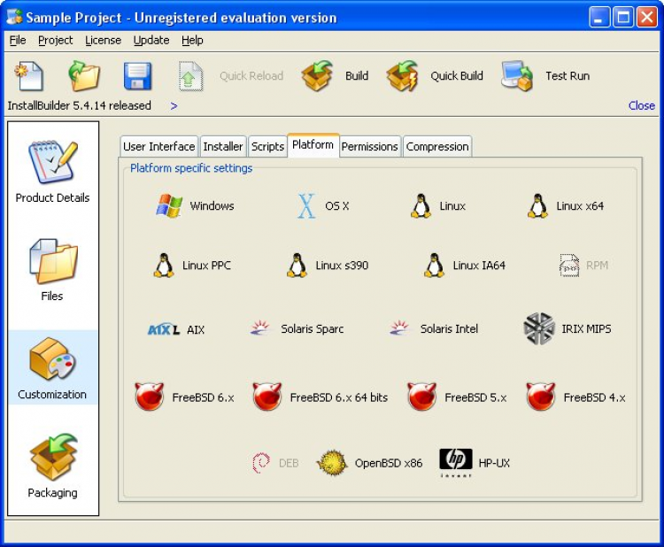 BitRock InstallBuilder - это утилита для создания установочных пакетов для различных операциаонных систем. С ее помощью вы сможете создавать профессиональные динамические установочники для Linux, Windows, Mac OS X, Solaris и др ОС. В дополнение к этому BitRock InstallBuilder умеет генерировать автономные RPM и DEB пакеты. Все установщики сжимаются с приминением алгоритма LZMA.