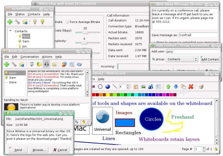 BitWise Надежная и функциональная программа для обмена текстовыми сообщениями в сети Интернет. BitWise обладает собственной сетью, позволяет подключаться пользователям напрямую, минуя сервера, и обеспечивает надежную защиту всех бесед. Помимо стандартного чата, есть возможность устраивать конференции с несколькими участниками и передавать различные файлы.