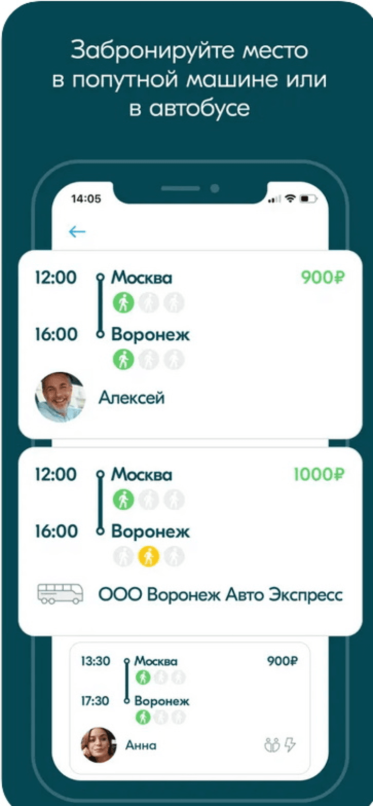 Приятной особенностью программы является возможность выбора надежных и проверенных попутчиков, а благодаря возможности оставлять о них отзывы - вы сможете поделиться своими впечатлениями от поездки с другими пользователями.
