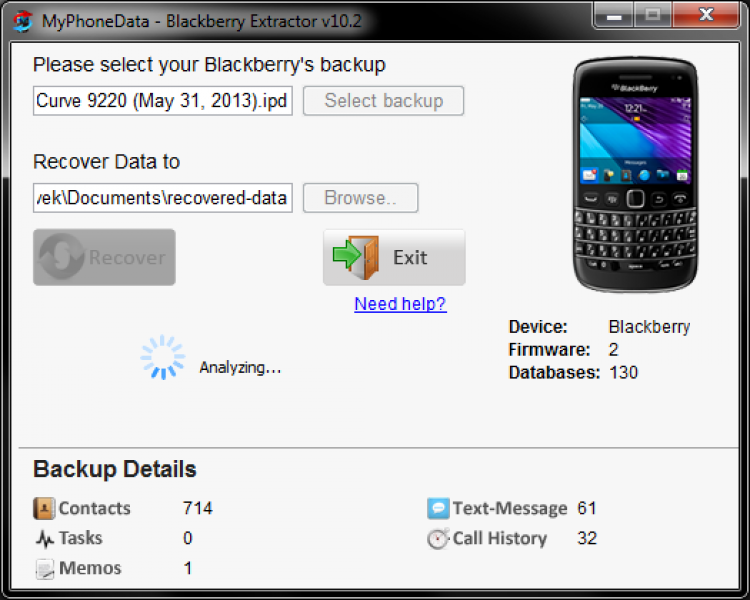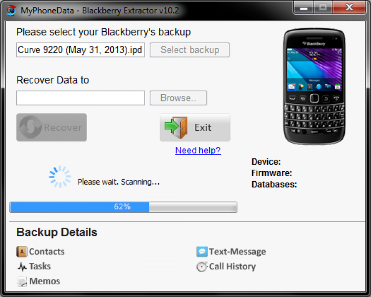 Blackberry Extractor Утилита, с помощью которой можно извлекать файлы из бэкапов коммуникаторов Blackberry на компьютер. Она позволяет просматривать и извлекать контакты, текстовые сообщения, историю звонков, заметки и списки дел.