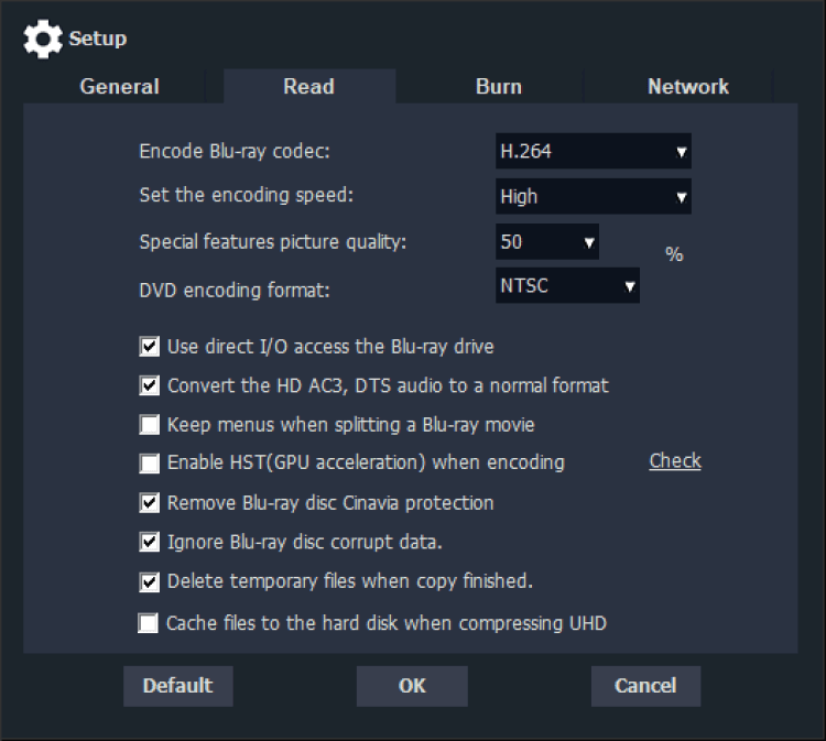 - сжатие контента и запись на диски меньшего объема (с 50 Гб до 25 Гб) без видимой потери качества;