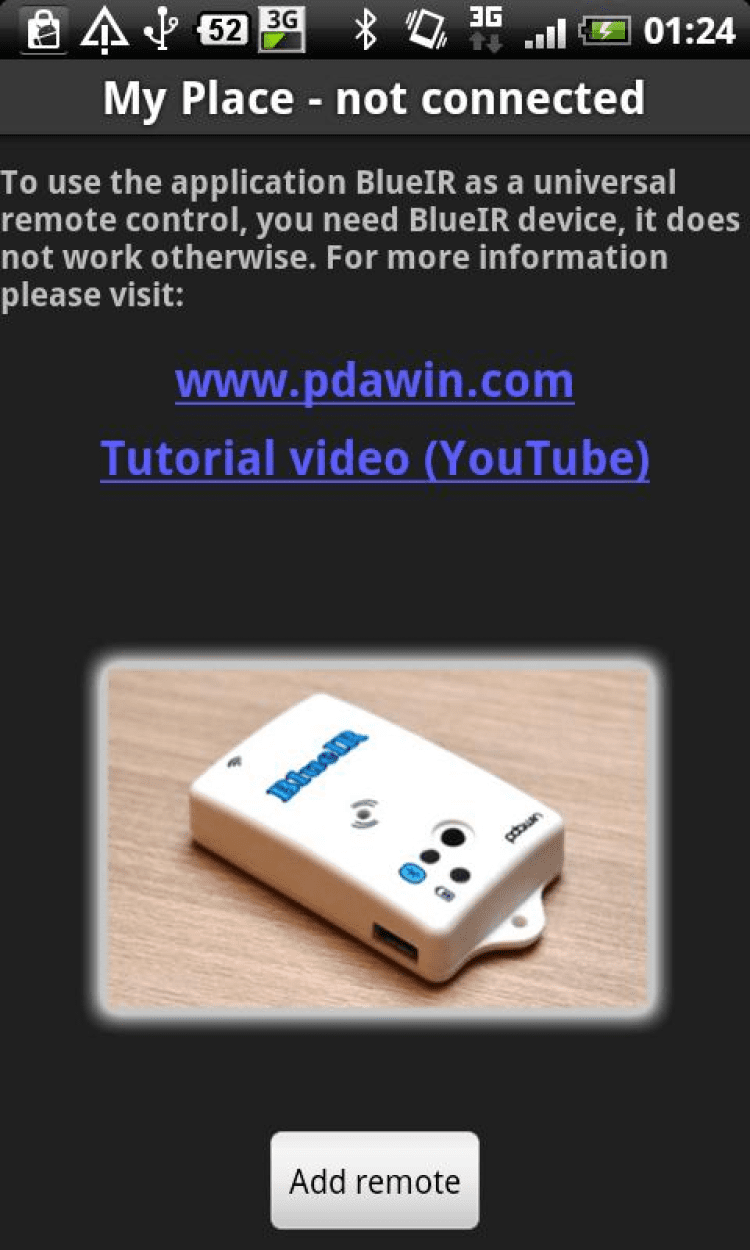 Приложение, которое позволит удаленно управлять TV, DVD, SAT и прочими устройствами при помощи Android смартфона или планшета и устройства BlueIR. Вам не обязательно направлять смартфон или планшет на телевизор: достаточно находиться в зоне действия BlueIR. Главное условие использования - устройство должно принимать инфракрасные сигналы.