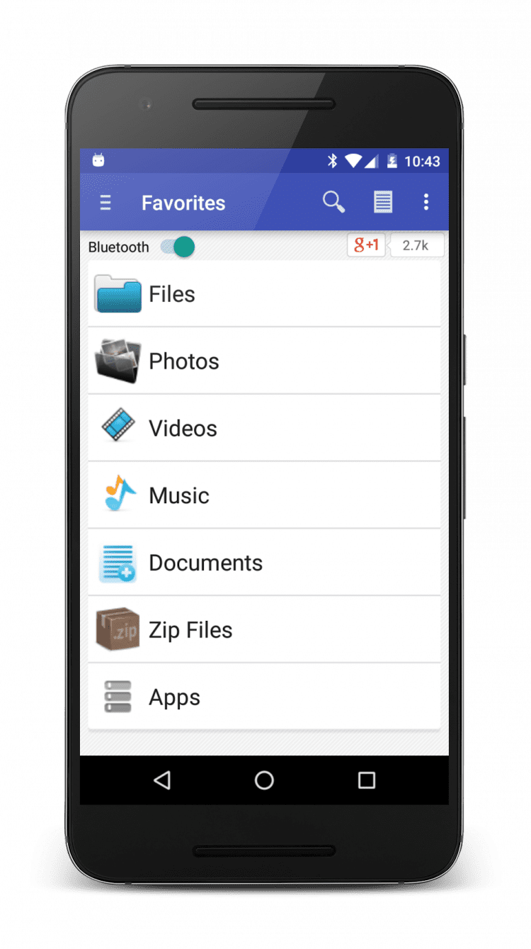 Bluetooth File Share — эта программа позволяет делиться фотографиями, видео, музыкой, документами, приложениями и прочими файлами через Bluetooth. Программа обладает встроенным файловым менеджером, что позволит облегчить поиск нужных файлов. Программа Bluetooth File Share позволяет включать Bluetooth, не заходя в настройки устройства, создавать резервные копии приложений и делиться данными через Facebook, Gmail и прочие приложения.