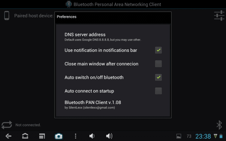 Bluetooth PAN *ROOT* С помощью этой программы вы сможете подключать свои планшетные пк к сети интернет через смартфон, используя протокол Bluetooth Personal Area Network. Обратите внимания, что на устройствах необходим Root, а на планшете может потребоваться pand (BlueZ).