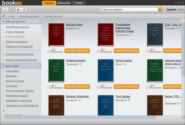 Bookee Bookee предоставляет пользователям удобный инструмент, с помощью которого можно легко искать, покупать, скачивать и читать электронные книги. Bookee использует собственный формат книг, который защищает их от нелегального распространения. С помощью Bookee можно искать книги в огромной библиотеке, покупать и добавлять их на свою виртуальную полку. Перед покупкой можно прочитать книгу в ознакомительном режиме, чтобы решить, стоит ее покупать или нет. Все купленные книги Bookee хранит в вашем профиле на сайте, поэтому вы можете получить доступ к своей библиотеке с любого компьютера, подключенного к интернету. Для удобства навигации все книги поделены на категории. Есть также функция поиска.