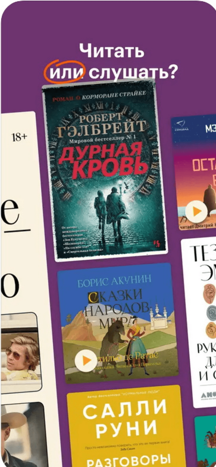 - обычные и аудиокниги, комиксы;