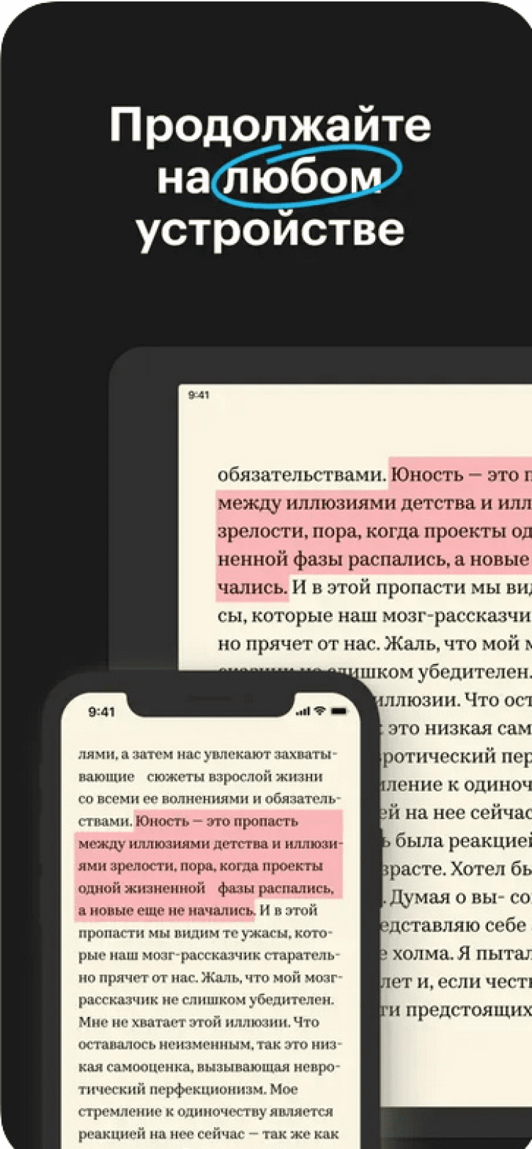 - скачивание книг на устройство в формате EPUB и FB2;