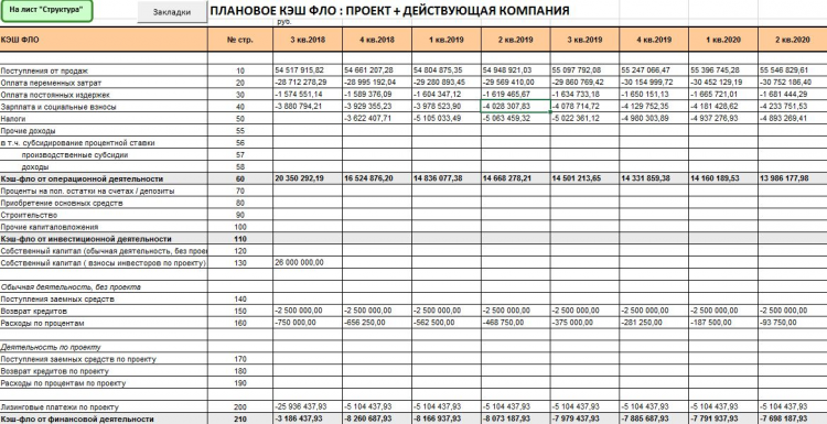 Данная финансовая модель разрабатывалась в соответствии с требованиями ведущих банков РФ, позволяет учесть деятельность действующей компании – показать свободные денежные потоки в варианте «с проектом» и «без проекта». Дополнительно к стоимости финансовой модели, возможно заказать заполнение финансовой модели Вашими данными "под ключ".