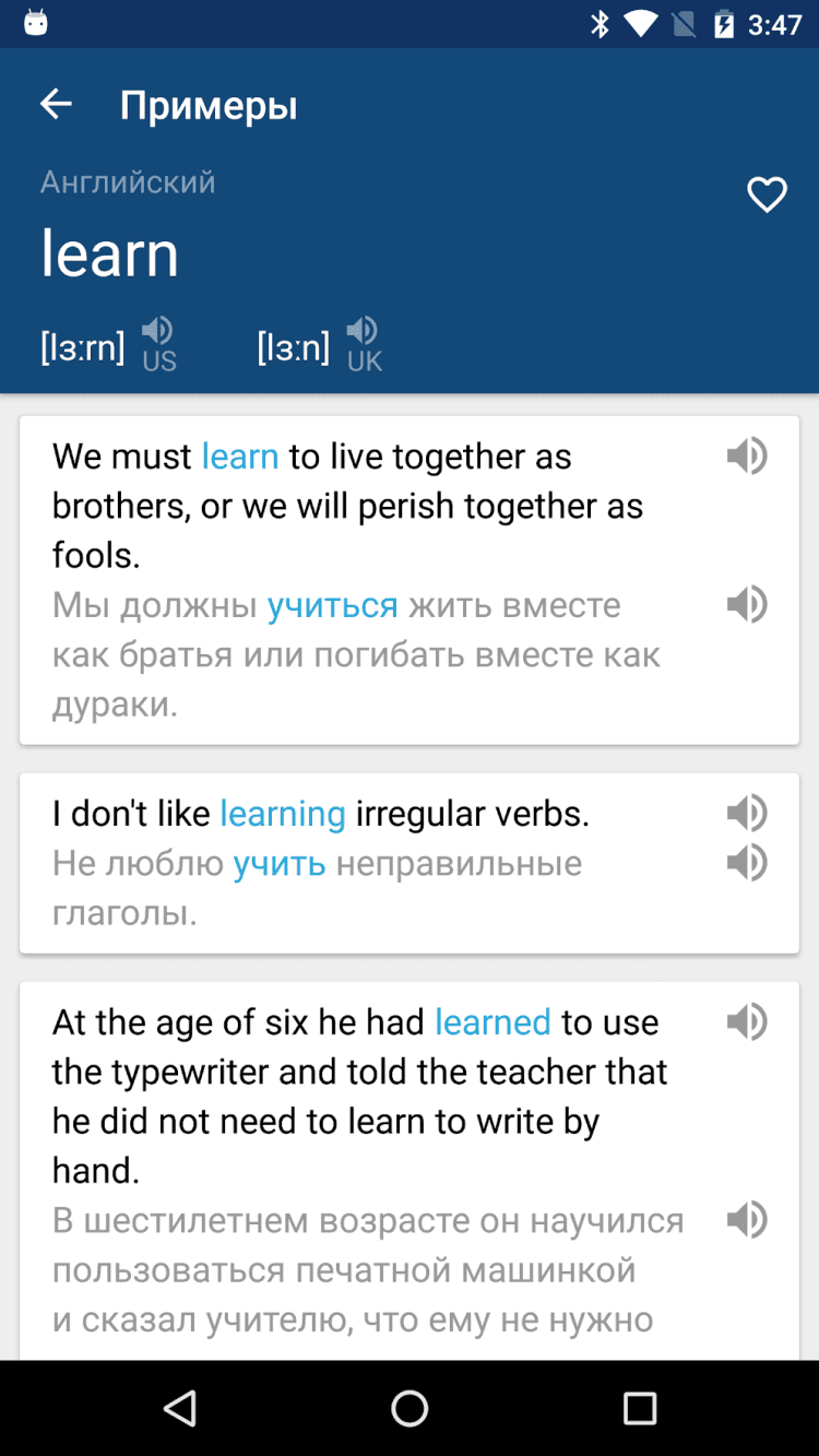- добавление слов в избранное;