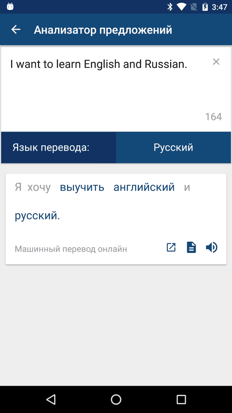 Приложение для перевода слов с русского на английский язык и наоборот. Программа содержит также более 1 млн статей. ПО работает автономно. Подключение к интернету требуется единожды, при первом запуске, для скачивания файлов кэша, включающих подробную базу данных.