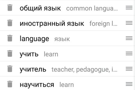 - автоматическое сохранение слов в разделе "История" после просмотра, благодаря этому можно регулярно просматривать и повторять новые слова;