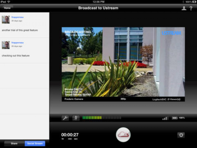 Broadcaster Это приложение позволит транслировать видео с камер Logitech Broadcaster, а так же записывать HD-видео на вашем iPad или iPhone. Благодаря Broadcaster, вы сможете просматривать превью видео, управлять камерой, изменять настройки трансляции, делиться ссылкой на трансляцию с друзьями, сохранять записанные видео на своем мобильном устройстве, обрезать их и загружать на Facebook или YouTube, а так же экспортировать видео для обработки в сторонних приложениях.