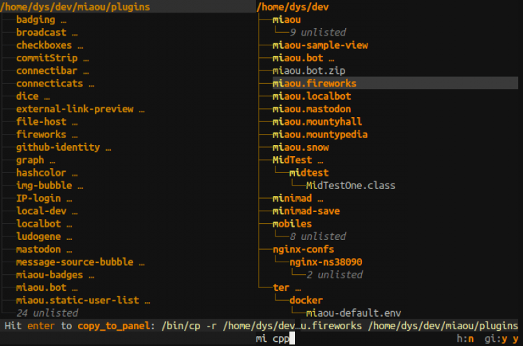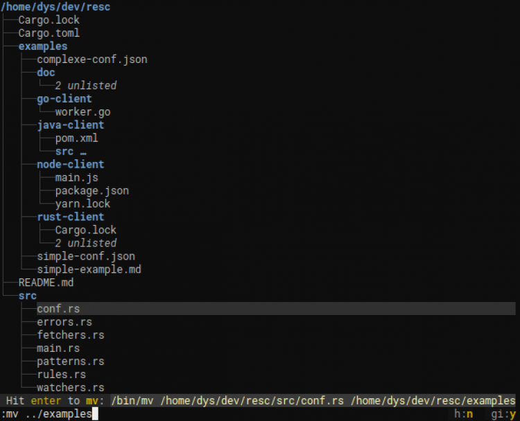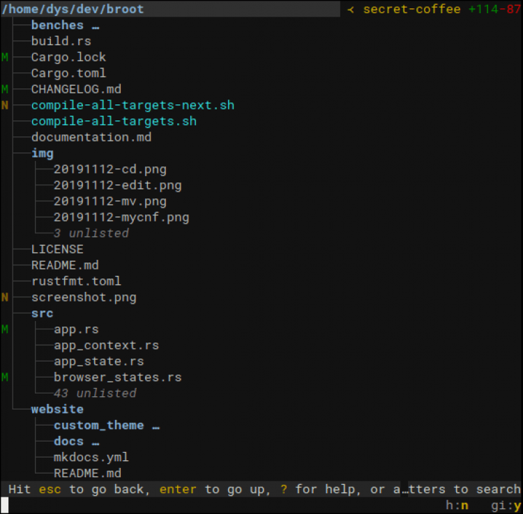 Помимо поиска файлов Broot позволяет манипулировать ими. Поддерживаются все стандартные операции: перемещение, копирование, удаление, создание папок и пр. Для более удобной работы с файлами можно активировать мультипанельный режим.