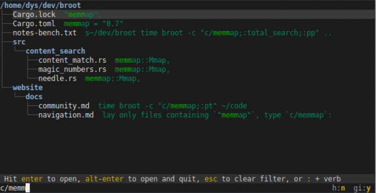 Broot - это утилита для быстрого поиска файлов на больших дисках. Поможет найти нужный файл, даже если вы забыли его название или расположение.