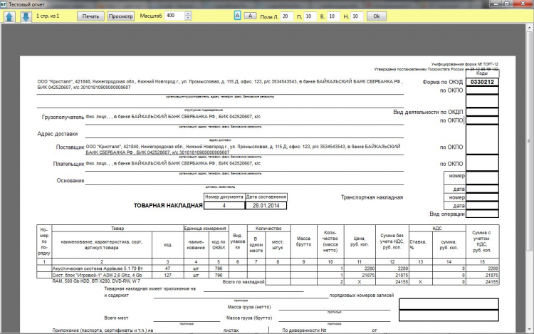 - Ведение списка номенклатуры, фирм, контрагентов, банков, банк. счетов, складов;