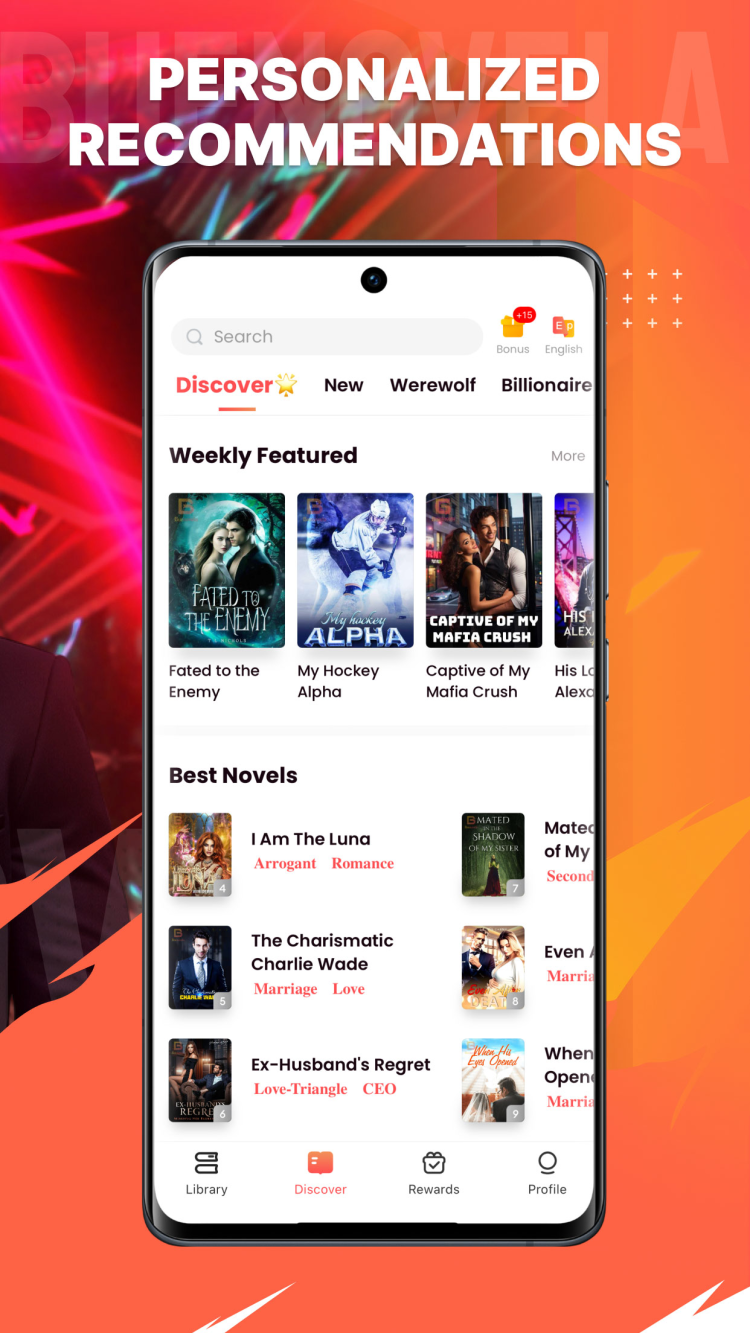 Buenovela — это программа, созданная, чтобы утолить вашу жажду захватывающих историй. Здесь вы найдете огромную коллекцию новелл в разных жанрах. В отличие от других цифровых платформ для чтения, Buenovela предлагает эксклюзивные произведения на английском и испанском языках, написанные реальными пользователями.