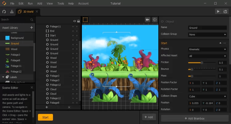 Если вы только начали пробовать свои силы в разработке игр, то это отличный стартовый вариант. На официальном сайте вы найдете разнообразные уроки и готовые игровые шаблоны и элементы, используя которые вы сможете изучить базовые принципы и механизмы этого игрового редактора. Вокруг него так же сложилось большое сообщество с каналом в Discord, где всегда можно спросить совета или помощи.