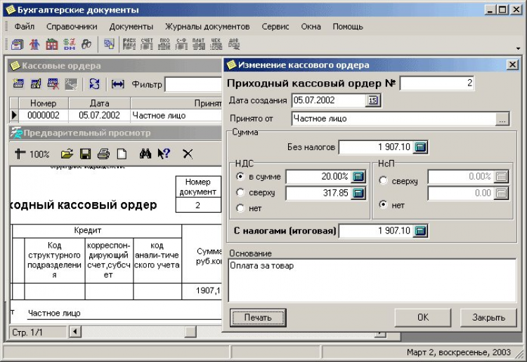Бухгалтерские документы - это программа для автоматизации бухгалтерского документооборота в различных коммерческих организациях, на небольших предприятиях, у частных предпринимателей.