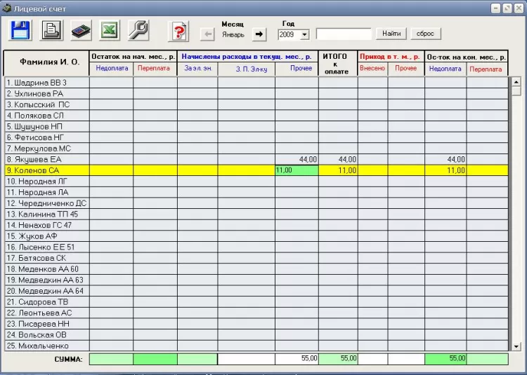 - Вести лицевой счет для каждого абонента с возможностью вывода на печать и экспорта в Excel.
