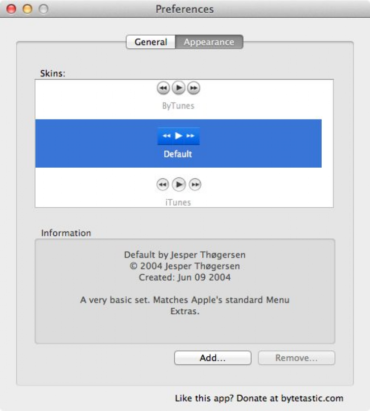 ByteController добавляет три кнопки: предыдущий трек, воспроизведение/пауза, следующий трек. При долгом нажатии на кнопки переключения трека, происходит ускоренная "перемотка" трека. А для тех, кто заботится о внешнем виде рабочего стола ByteController предлагает различные скины для оформления кнопок.