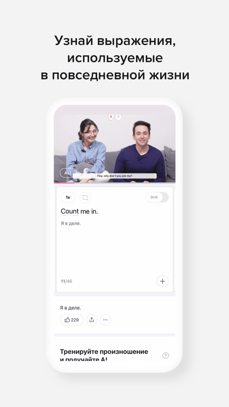 - наличие ИИ-помощника, который поможет проверить правильность произношения;