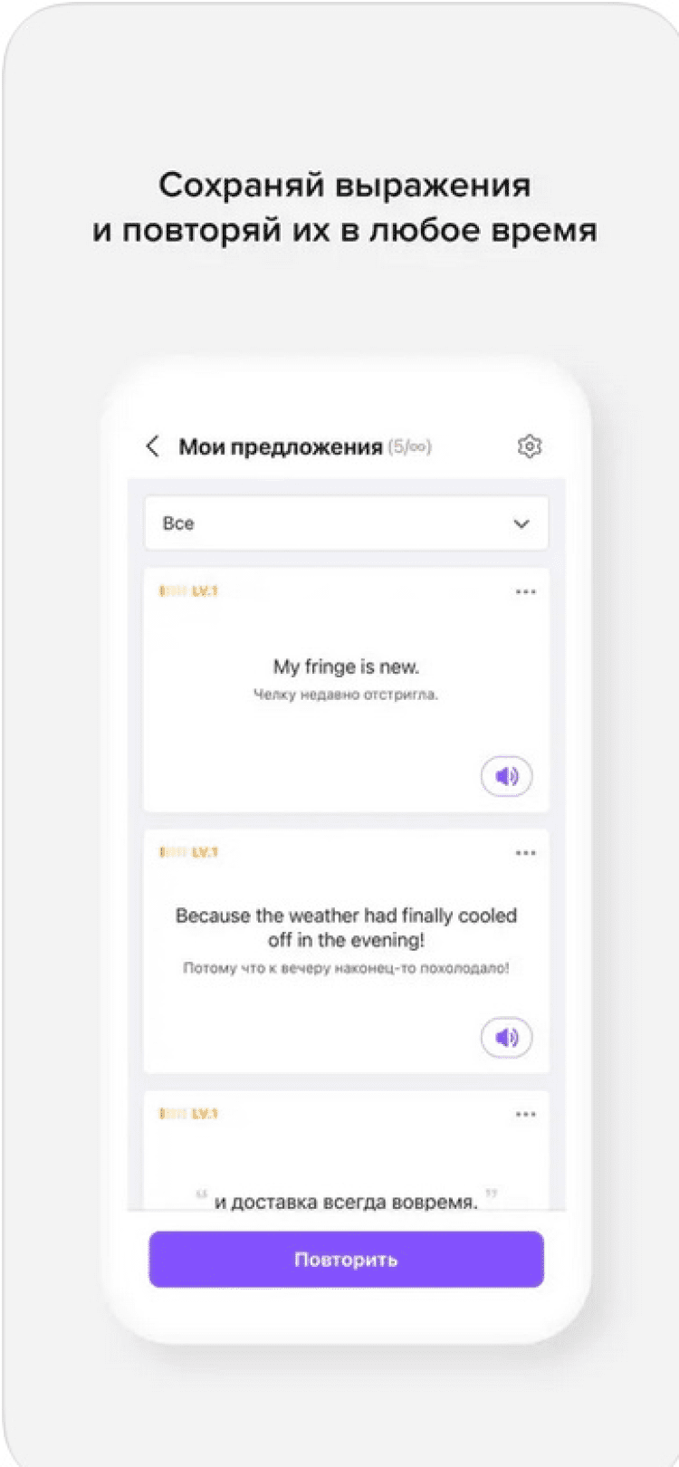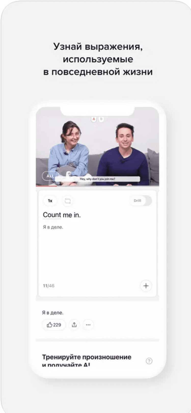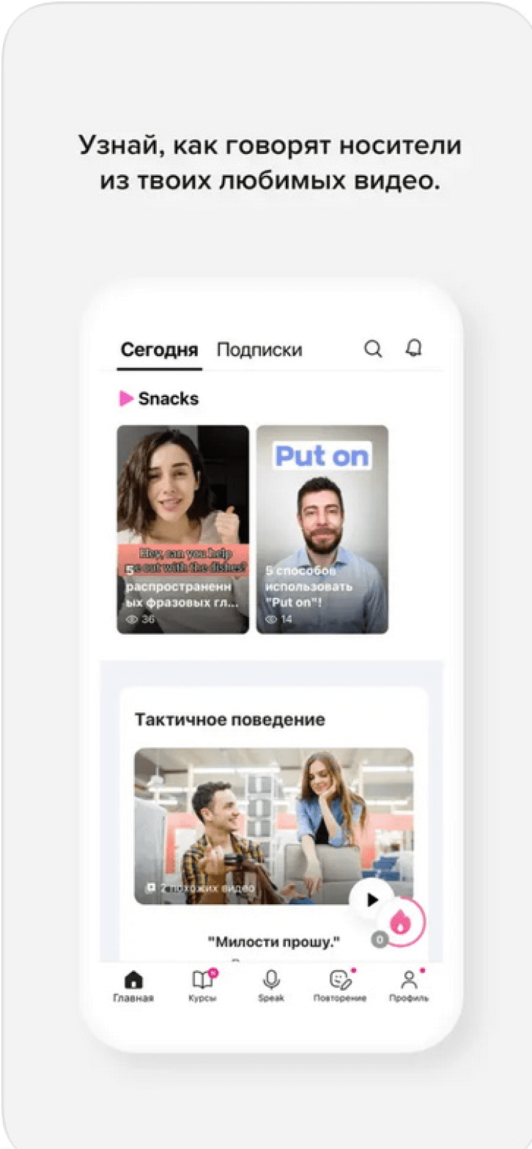 - видеоролики, тщательно подобранные носителями языка, в которых вы изучите новые слова и полезные предложения;