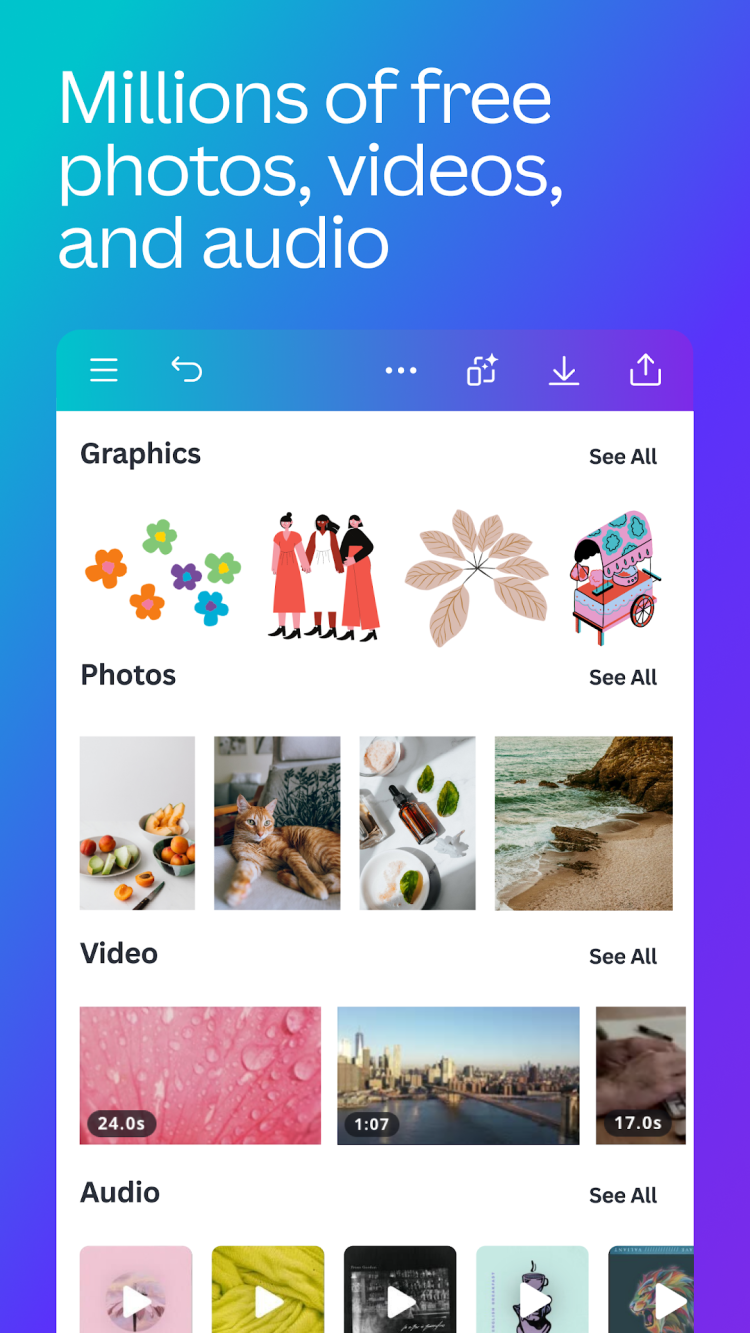 Canva - мобильное приложение, которое поможет создавать дизайны профессионального уровня на ходу, используя для этого только ваш смартфон или планшет на Android. Создание визитных карточек, открыток, логотипов и других изображений ещё никогда не было таким простым и удобным.